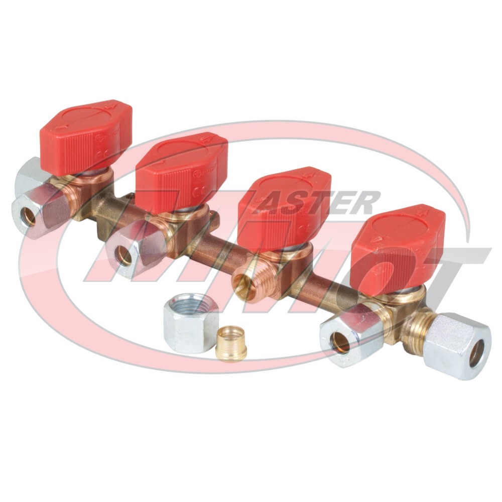 Blok zaworowy służący do rozdzielenia zasilania gazu na poszczególne urządzenia. Zawór umożliwia zamknięcie przepływu gazu do urządzeń zasilanych gazem między innymi: ogrzewanie, bojler, lodówka, kuchenka, piekarnik itp.
