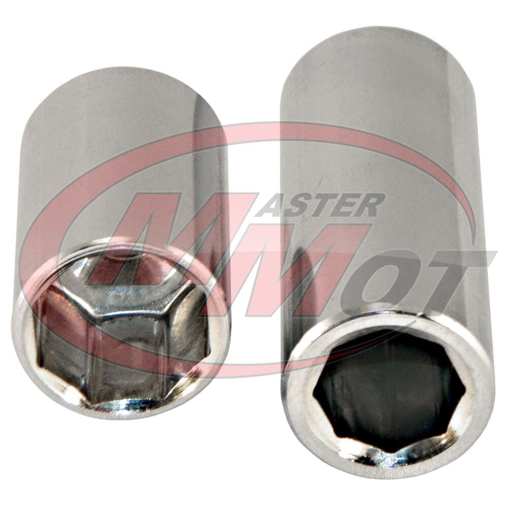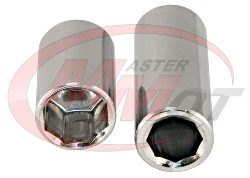 Zestaw ośmiokątnych kluczy nasadowych 1/4” do odkręcania zaworów wysokiego i niskiego ciśnienia w układach klimatyzacji pracujących na czynniku chłodniczym R-134a.
