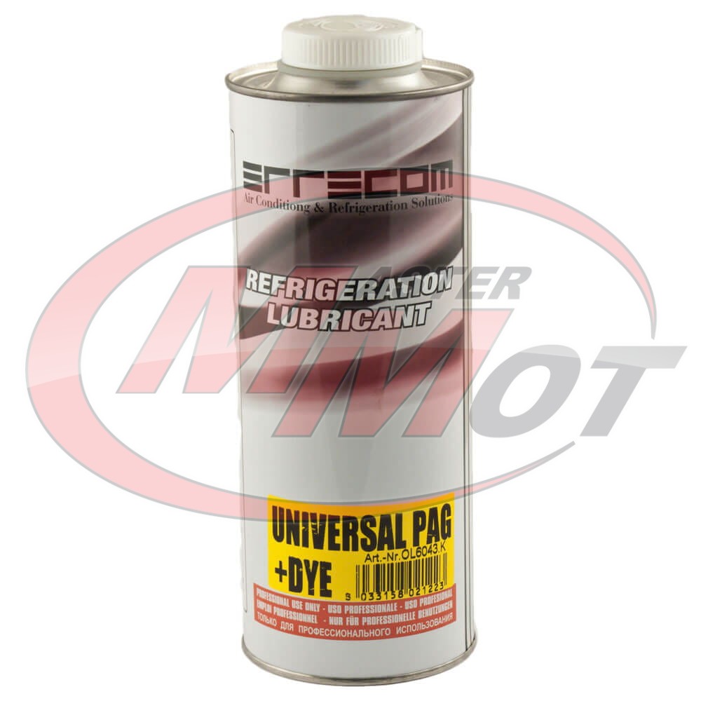 Olej Uniwersalny PAG z barwnikiem UV służący do dopełnień układów pracujących z czynnikiem R-134a. Stosowany do wszystkich rodzajów pojazdów. Olej Uniwersalny PAG jest już wymieszany z barwnikiem UV, przez co nie jest wymagana dodatkowa aplikacja kontrastu do układu klimatyzacji.